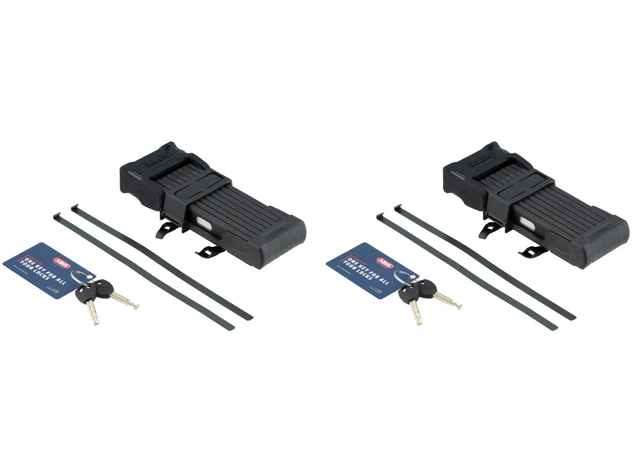 Lieferumfang:2 x Faltschloss ABUS Bordo Big 60004 x Schlüssel ABUS2 x Plus Code Card ABUS2 x Halter ABUS SH4 x Spannband