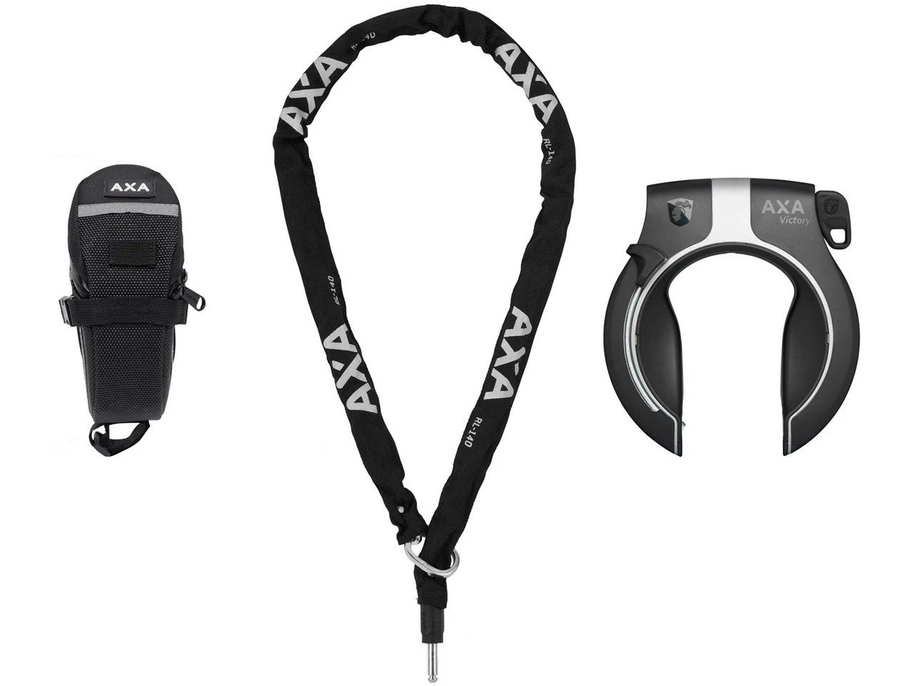 AXA Victory Rahmenschloss + RLC 140 Einsteckkette + Satteltasche Set