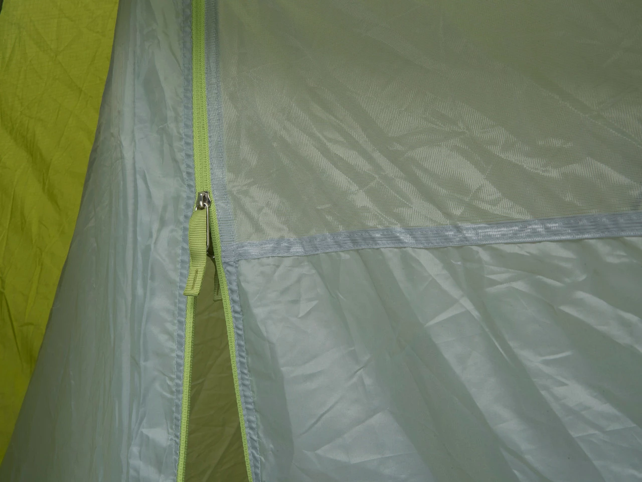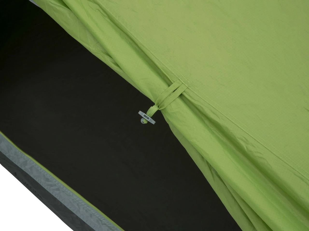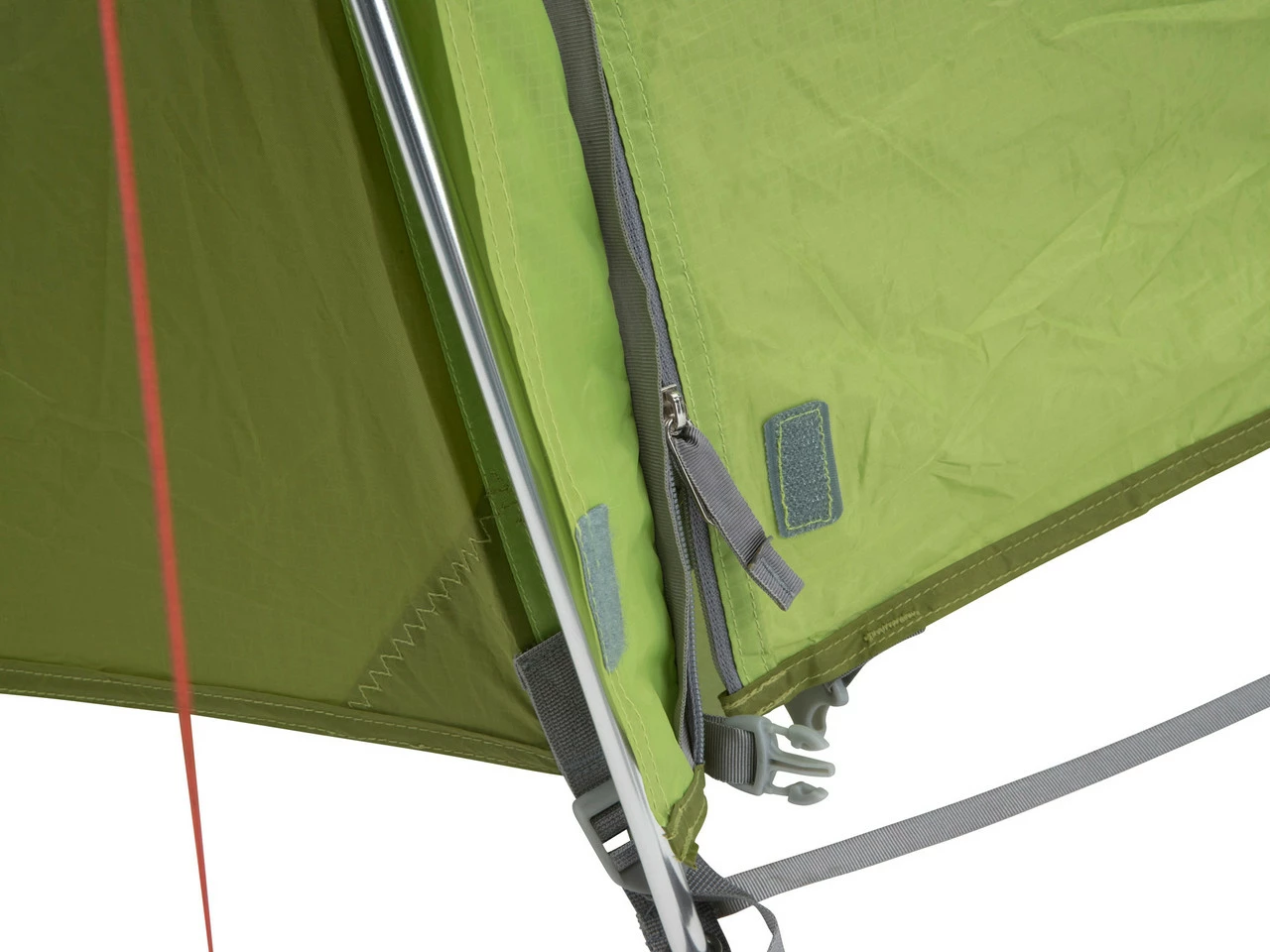 Belüftungsöffnungen sind durch eine Hutze vor Regen geschützt. Diese wird über einen 4-Wege-Reißverschluss am Zelteingang reguliert. Es ist ein Öffnen in beide Richtungen, von oben oder von unten, möglich.
