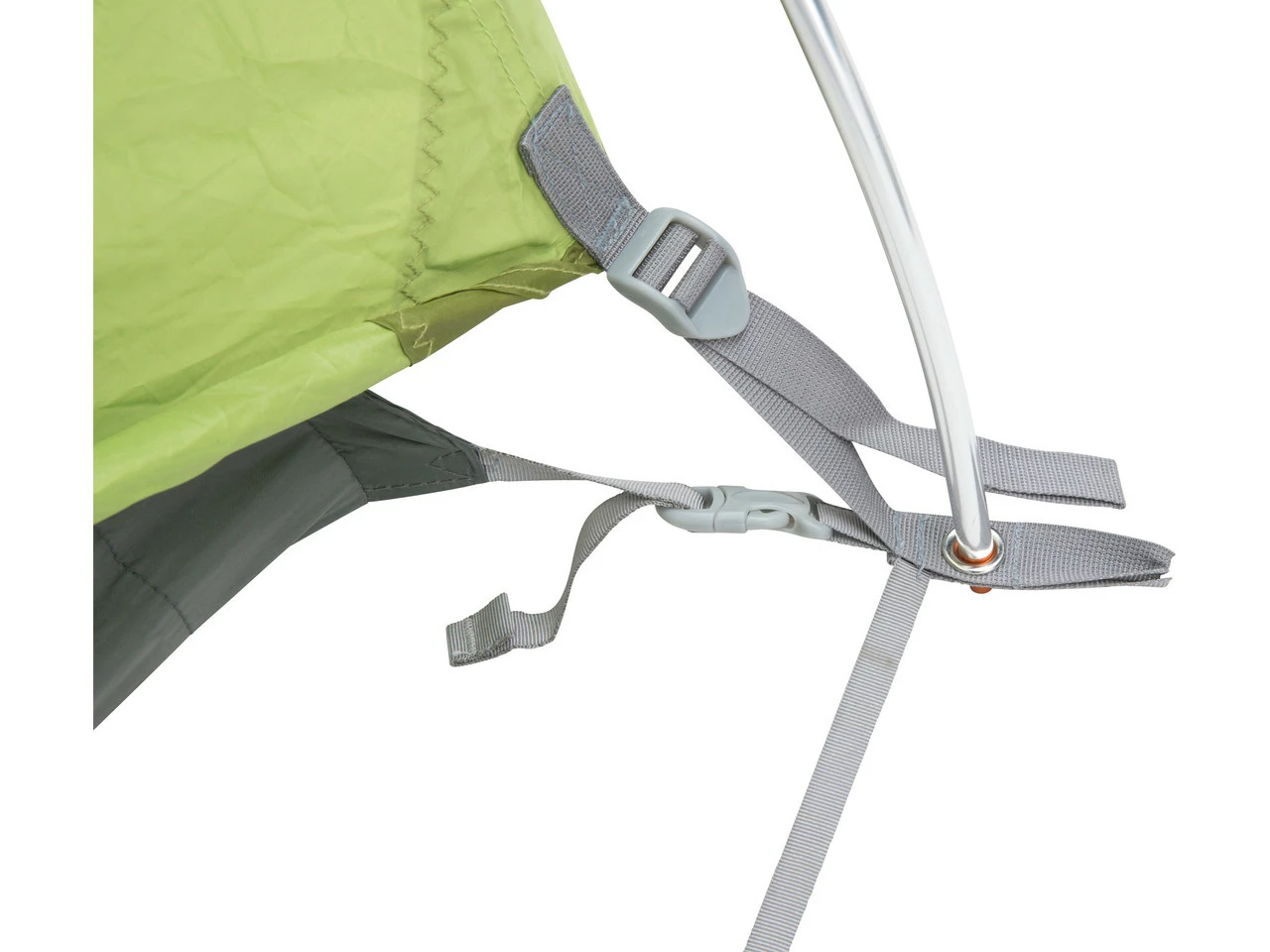 Man schiebt das Gestänge beim Aufbau in eine Tasche. So wird das Zelt von der Einschubseite aus auf Spannung gebracht.